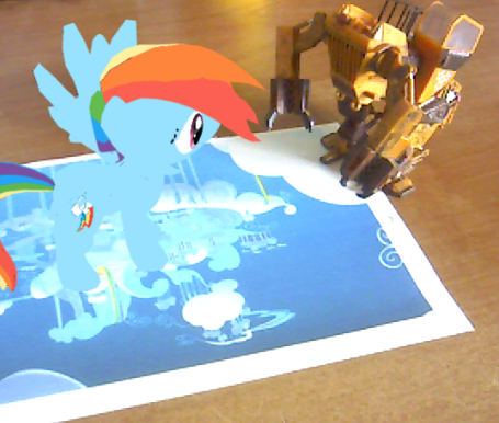 - If all went well, your reality is now being augmented by ponies. Move your webcam around, try with multiple markers, whatever comes to mind!